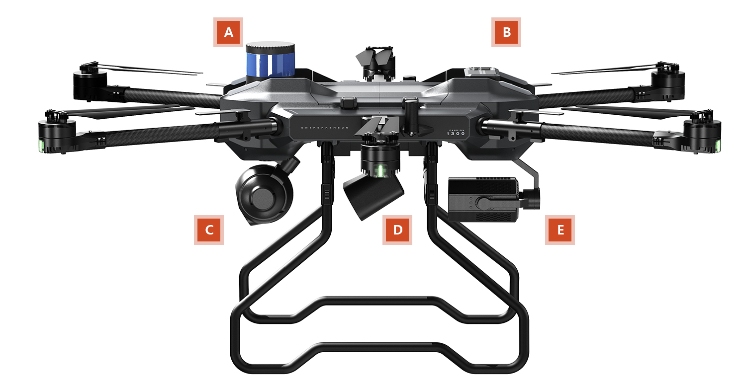 It can be equipped with high-weight mission equipment, and wired power supply operation is also possible.